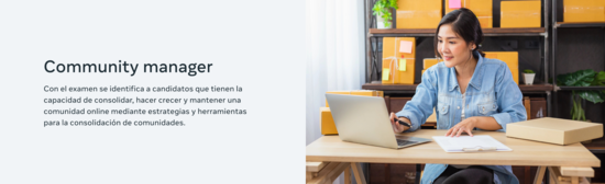 Público del examen: líderes comunitarios, gerentes de marca y responsables de medios sociales que tengan las competencias y el conocimiento para administrar, hacer crecer y conectar comunidades online, y que comprendan las políticas y regulaciones de la plataforma.